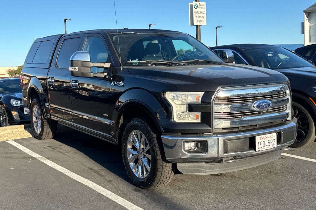 EQUIPMENT GROUP 502A LUXURY Radio: Sony Single CD w/HD & SiriusXM Satellite, 10 speakers and subwoofer, Engine: 5.0L V8 FFV, 3.31 Axle Ratio, GVWR: 7,000 lbs Payload Package, Automatic High Beam w/Rain-Sensing Wipers, Windshield wipers, 2nd Row Heated Seats, Power Tilt/Telescoping Steering Column w/Memory, Remote Start System, Lariat Chrome Appearance Package, 2 chrome front tow hooks, Single-Tip Chrome Exhaust, Chrome Angular Step Bars, Chrome Door Handles w/Body-Color Bezel, Wheels: 18 Chrome-Like PVD, Chrome 3-Bar Style Grille w/Chrome Surround, chrome mesh insert, Chrome Skull Caps on Exterior Mirrors, LED Side-Mirror Spotlights, high-intensity LED security approach lamps, Reverse Sensing System, Voice-Activated Navigation, SiriusXM Traffic and Travel Link in the, TWIN PANEL MOONROOF, ADAPTIVE CRUISE CONTROL & COLLISION WARNING brake support, POWER-DEPLOYABLE RUNNING BOARDS, TECHNOLOGY PACKAGE Lane-Keeping System, 360 camera w/split-view display and dynamic hitch assist, ELECTRONIC LOCKING W/3.55 AXLE RATIO, ACTIVE PARK ASSIST, ENGINE: 3.5L V6 ECOBOOST 3.31 Axle Ratio, GVWR: 7,000 lbs Payload Package, TAILGATE STEP W/TAILGATE LIFT ASSIST, ALL-WEATHER RUBBER FLOOR MATS. Ford Lariat with Tuxedo Black Metallic exterior and Black interior features a 8 Cylinder Engine with 365 HP at 5000 RPM*.
